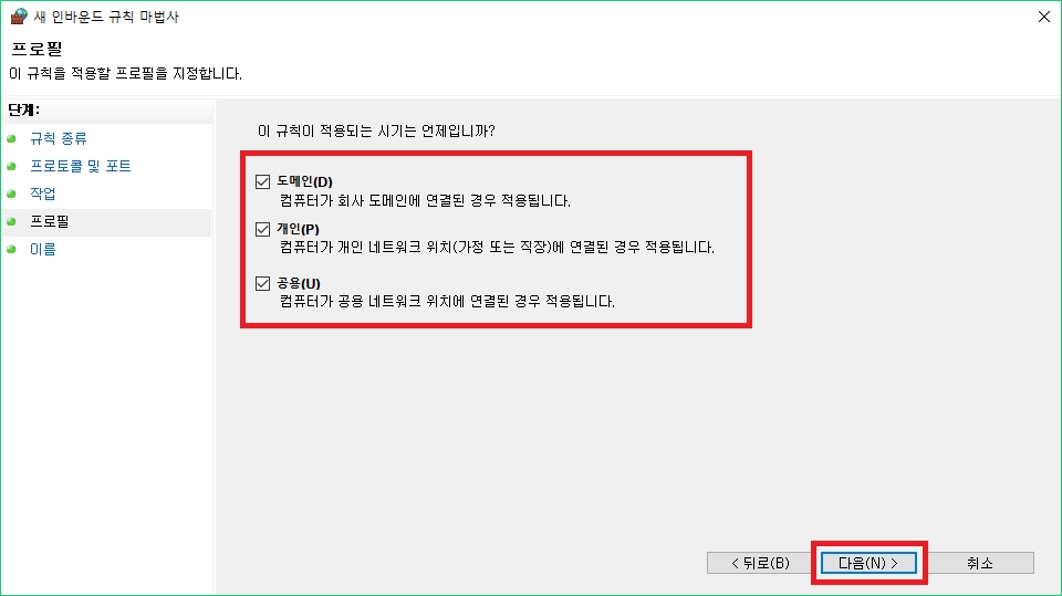 윈도우 방화벽 설정