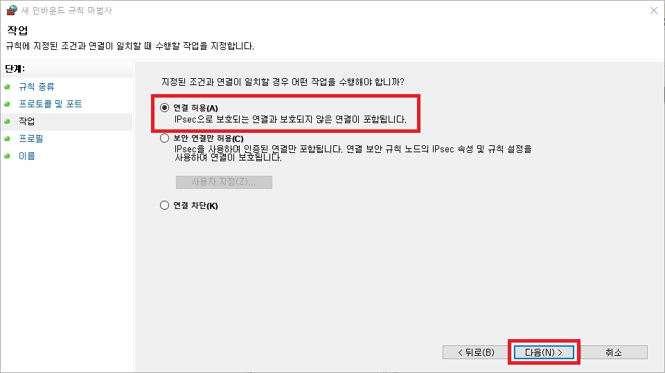 https://s3.amazonaws.com/helpscout.net/docs/assets/5a26cd182c7d3a1a640c9a5d/images/5a65e44b2c7d3a39e626380d/file-BjKmaWyY6M.png 연결 허용을 선택하고 다음 버튼을 눌러줍니다.