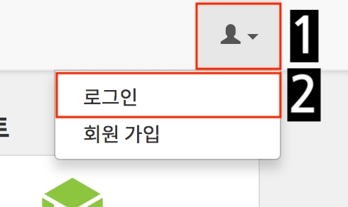 사이트 우측 상단을 누른 후 로그인 버튼을 누릅니다. 모바일인 경우 좌측 상단입니다.